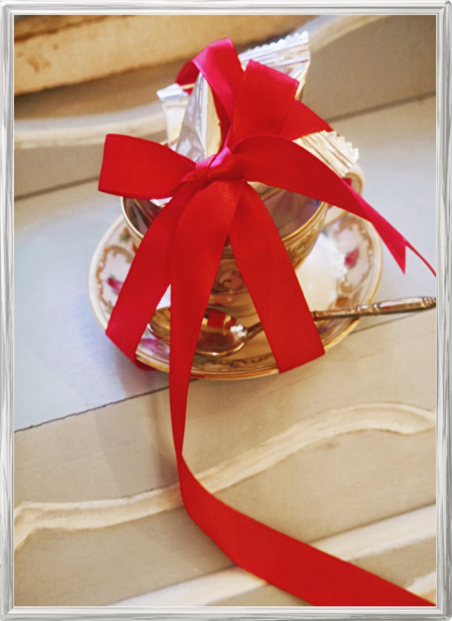 アンティークカップにチョコを詰めて